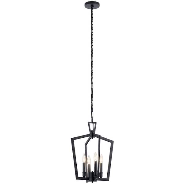 Abbotswell 19 in. 4-Light Black Traditional Candle Kitchen Pendant Hanging Light