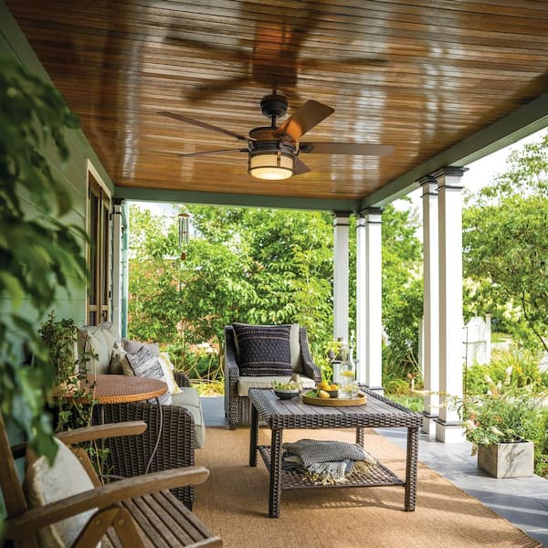 Ahrendale 60 in. Outdoor Auburn Downrod Mount Ceiling Fan with Integrated LED with Wall Control Included