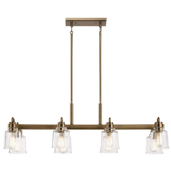 Aivian 42 in. 8-Light Weathered Brass Vintage Industrial Shaded Linear Chandelier for Dining Room