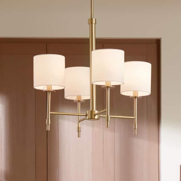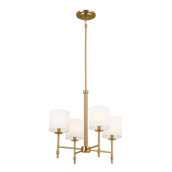 Ali 20 in. 4-Light Brushed Natural Brass Traditional Shaded Circle Mini Chandelier for Dining Room