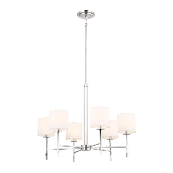 Ali 28 in. 6-Light Polished Nickel Traditional Shaded Circle Chandelier for Dining Room