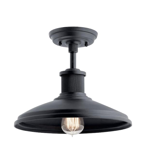 Allenbury 1-Light Textured Black Coastal Shaded Kitchen Convertible Pendant Hanging Light to Semi-Flush
