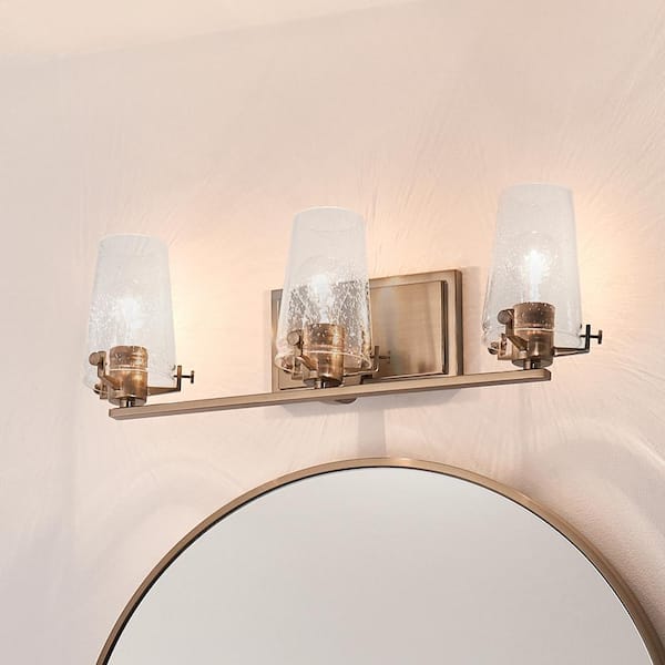 Alton 24 in. 3-Light Champagne Bronze Vintage Industrial Bathroom Vanity Light with Clear Seeded Glass