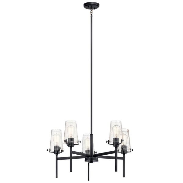 Alton 27 in. 5-Light Black Vintage Industrial Wagon Wheel Circle Chandelier for Dining Room