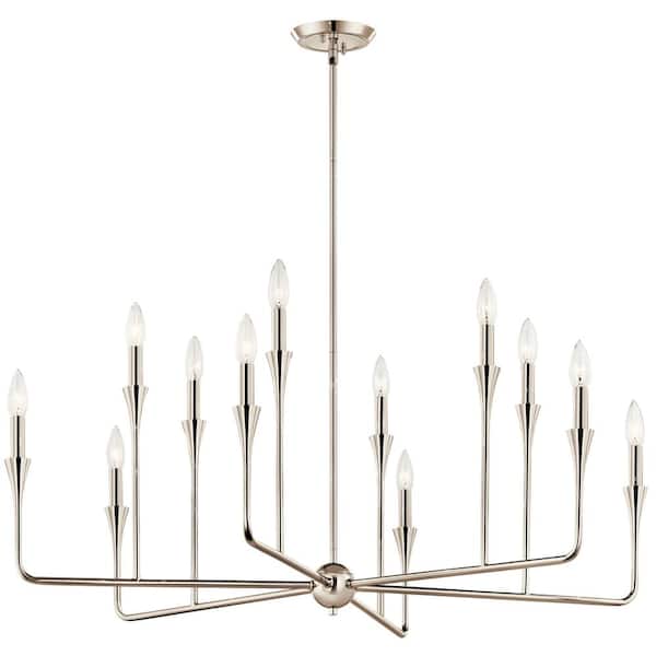 Alvaro 39.75 in. 12-Light Polished Nickel Modern Candle Chandelier for Dining Room