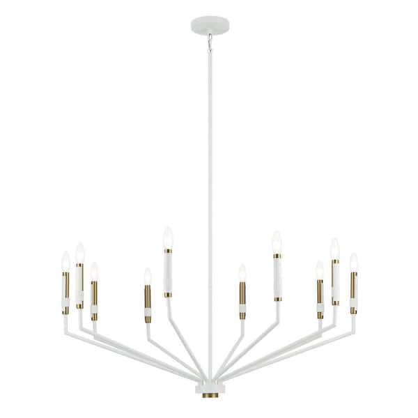 Armand 38.25 in. 10-Light White with Bronze Accent Contemporary Candle Circle Chandelier for Dining Room