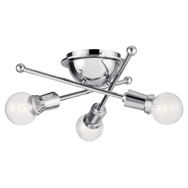 Armstrong 15 in. 3-Light Chrome Mid-Century Modern Hallway Flush Mount Ceiling Light