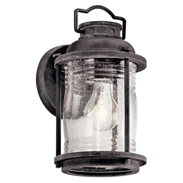 Ashland Bay 11 in. 1-Light Weathered Zinc Outdoor Hardwired Wall Lantern Sconce with No Bulbs Included (1-Pack)