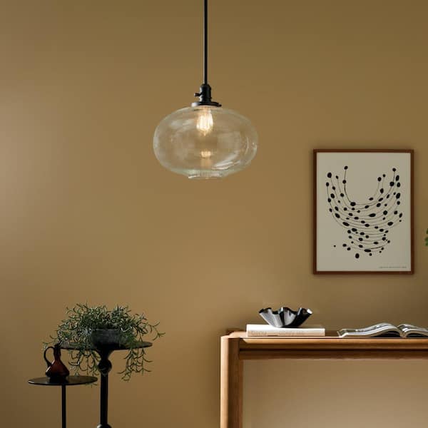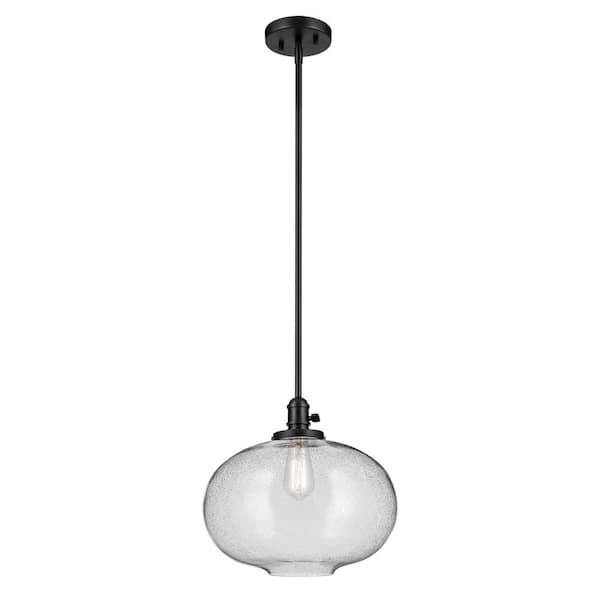 Avery 14.5 in. 1-Light Black Vintage Industrial Shaded Globe Kitchen Hanging Pendant Light with Seeded Glass