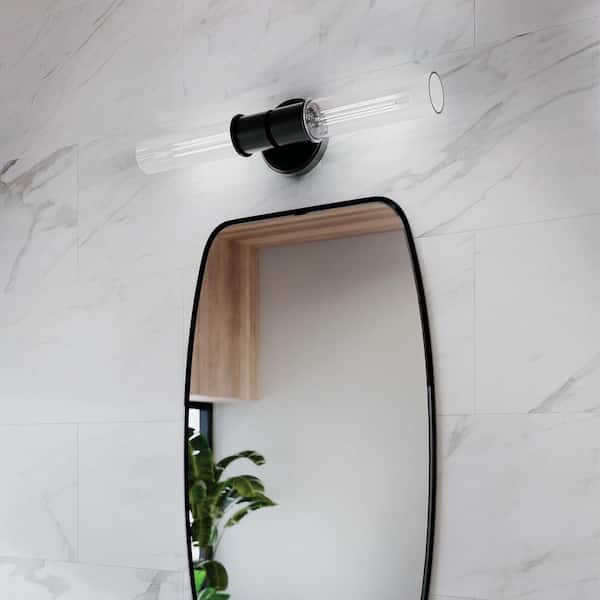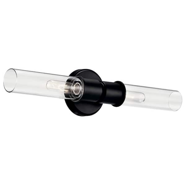 Aviv 2-Light Black Bathroom Indoor Wall Sconce Light with Clear Glass Shade