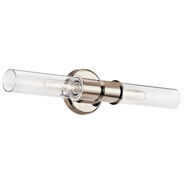 Aviv 2-Light Polished Nickel Bathroom Indoor Wall Sconce Light with Clear Glass Shade
