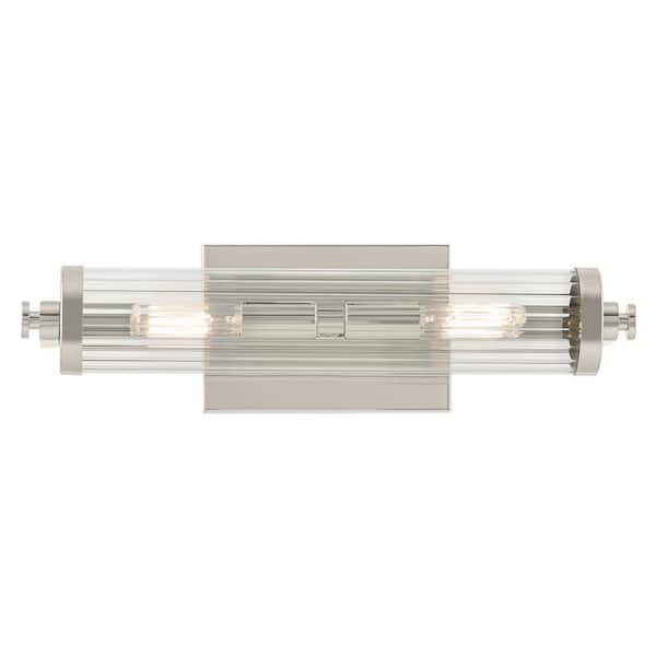 Azores 16 in. 2-Light Polished Nickel Vintage Industrial Bathroom Vanity Light with Clear Fluted Glass