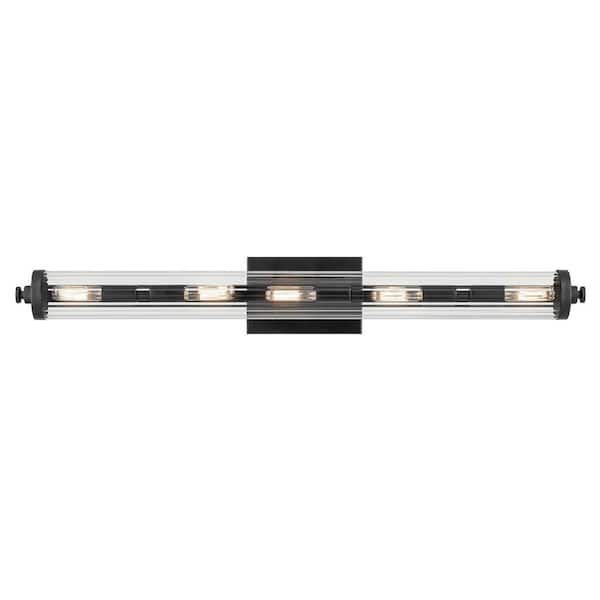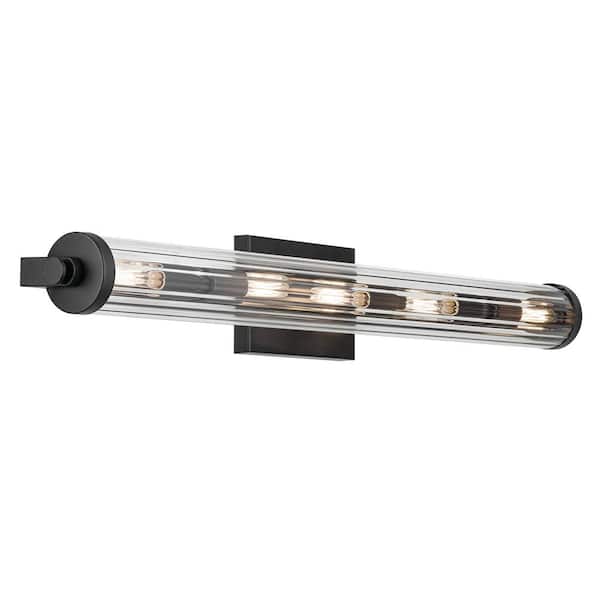 Azores 32 in. 5-Light Black Vintage Industrial Bathroom Vanity Light with Clear Fluted Glass
