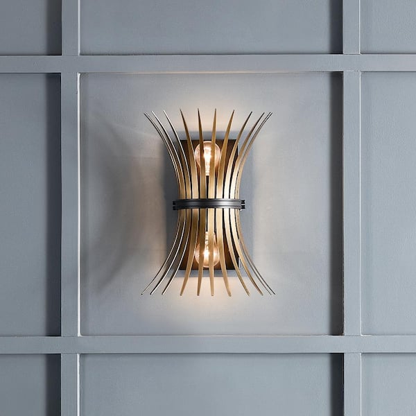 Baile 2-Light Natural Brass and Black Hallway Wall Sconce Light