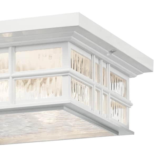 Beacon Square 2-Light White Outdoor Porch Ceiling Flush Mount Light with Clear Hammered Glass (1-Pack)