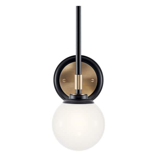 Benno 1-Light Black and Champagne Bronze Bathroom Indoor Wall Sconce Light with Opal Glass Shade