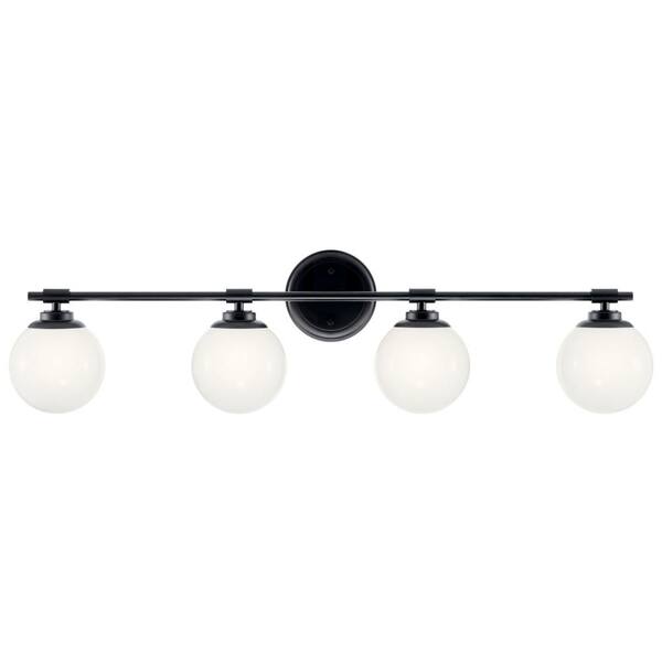Benno 34 in. 4-Light Black Industrial Bathroom Vanity Light with Opal Glass