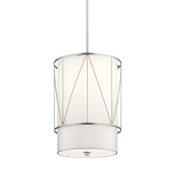 Birkleigh 1-Light Satin Nickel Transitional Shaded Kitchen Pendant Hanging Light with Fabric Shade