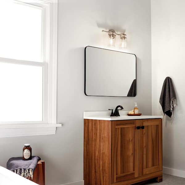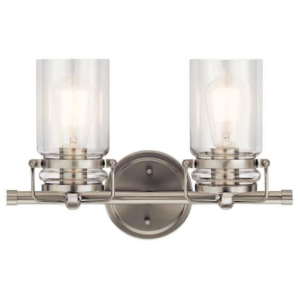 Brinley 15.75 in. 2-Light Brushed Nickel Vintage Bathroom Vanity Light with Clear Glass
