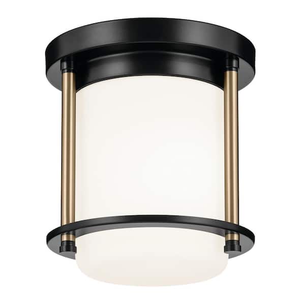 Brit 7.25 in. 1-Light Black and Champagne Bronze Industrial Hallway Flush Mount Ceiling Light