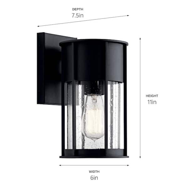 Camillo 11 in. 1-Light Textured Black Outdoor Hardwired Wall Lantern Sconce with No Bulbs Included (1-Pack)