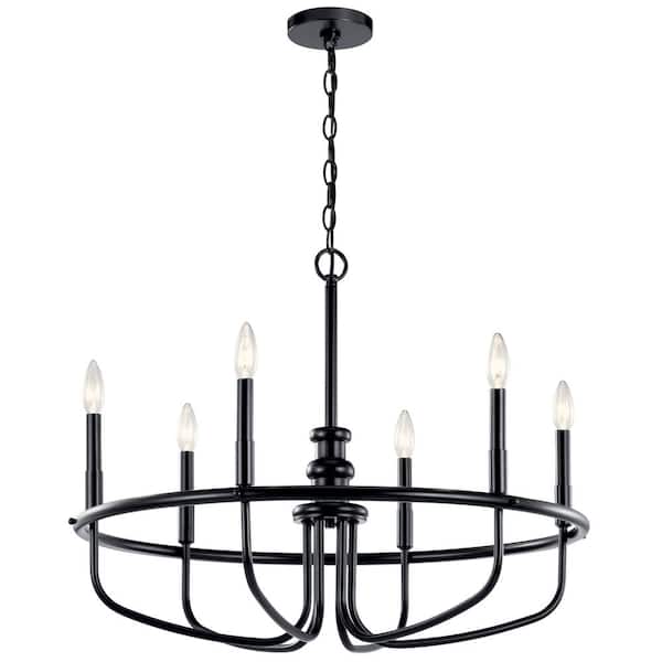 Capitol Hill 28.75 in. 6-Light Black Traditional Candle Circle Chandelier for Dining Room