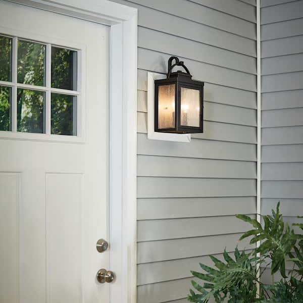 Carlson 14.75 in. 2-Lights Rubbed Bronze Outdoor Hardwired Wall Lantern Sconce with No Bulbs Included (1-Pack)