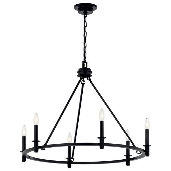 Carrick 32.25 in. 6-Light Black Traditional Candle Circle Chandelier for Dining Room
