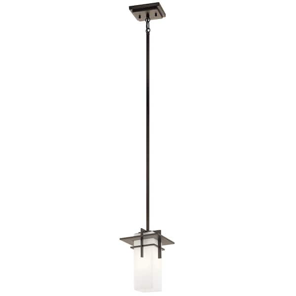Caterham 1-Light Olde Bronze Outdoor Porch Hanging Pendant Light with Satin Etched Cased Opal Glass (1-Pack)