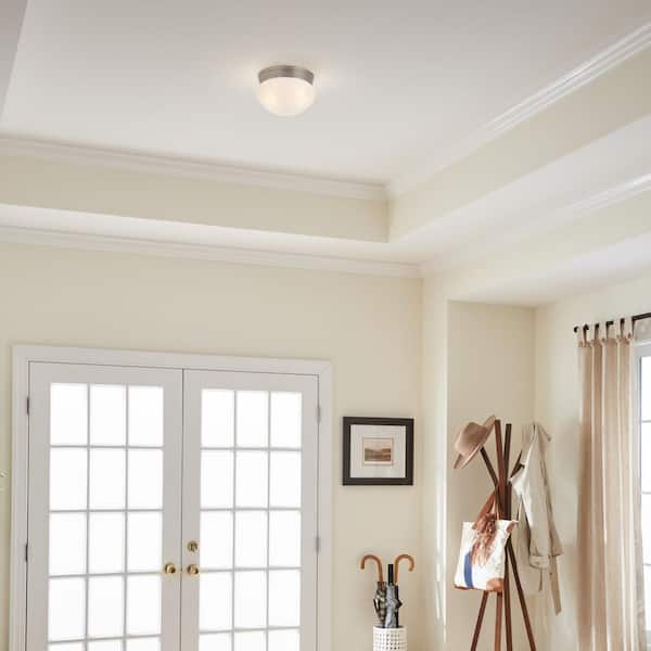 Ceiling Space 9.25 in. 2-Light Brushed Nickel Traditional Hallway Flush Mount Ceiling Light with Alabaster Swirl Glass