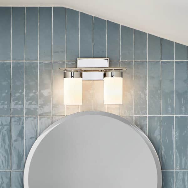 Ciona 14.5 in. 2-Light Polished Nickel Traditional Bathroom Vanity Light with Round Ribbed Glass