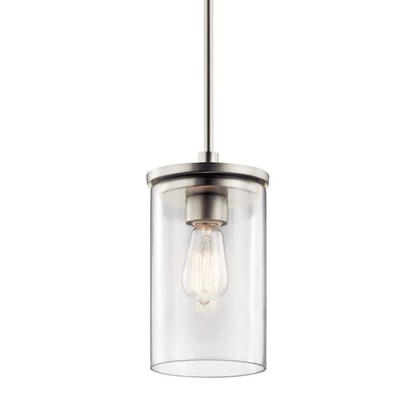 Crosby 1-Light Brushed Nickel Contemporary Shaded Kitchen Mini Pendant Hanging Light with Clear Glass