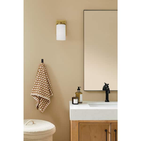 Crosby 1-Light Natural Brass Bathroom Indoor Wall Sconce Light with Satin Etched Cased Opal Glass Shade