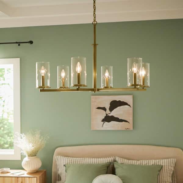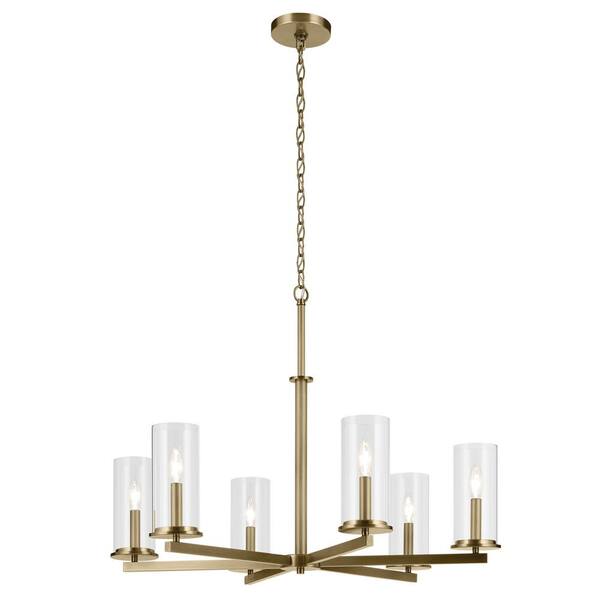 Crosby 32.25 in. 6-Light Natural Brass Contemporary Candlestick Cylinder Chandelier for Dining Room