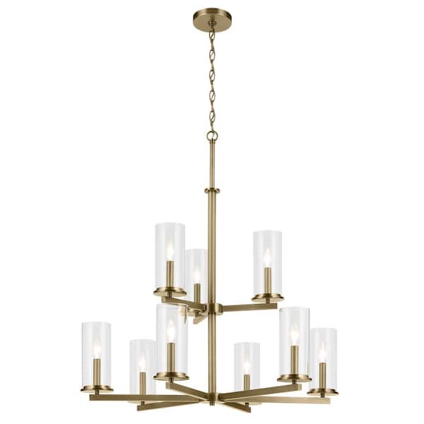 Crosby 32.5 in. 9-Light Natural Brass 2-Tier Contemporary Candlestick Cylinder Chandelier for Dining Room