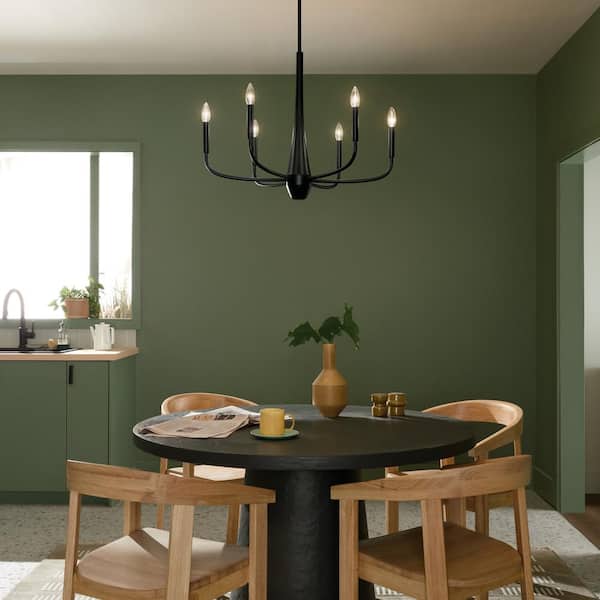 Deela 28 in. 6-Light Black Modern Candle Circle Chandelier for Dining Room