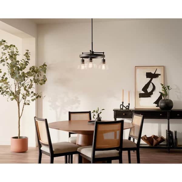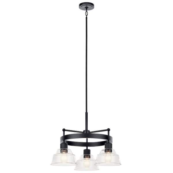 Eastmont 23.25 in. 3-Light Black Vintage Industrial Shaded Circle Chandelier for Dining Room