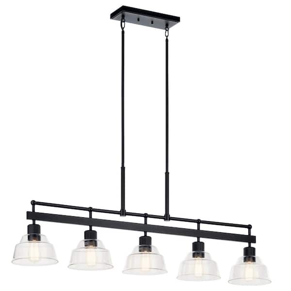Eastmont 50 in. 5-Light Black Vintage Industrial Shaded Linear Chandelier for Dining Room