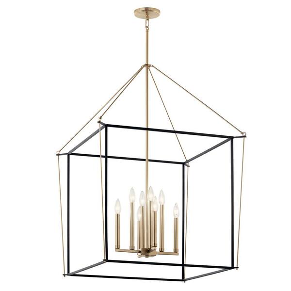 Eisley 40.25 in. 8-Light Champagne Bronze and Black Modern Foyer Candle Hanging Pendant Light