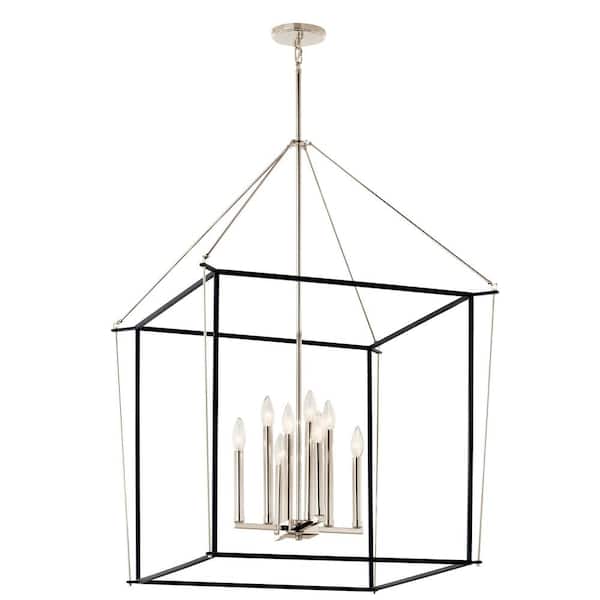 Eisley 40.25 in. 8-Light Polished Nickel and Black Modern Foyer Candle Hanging Pendant Light