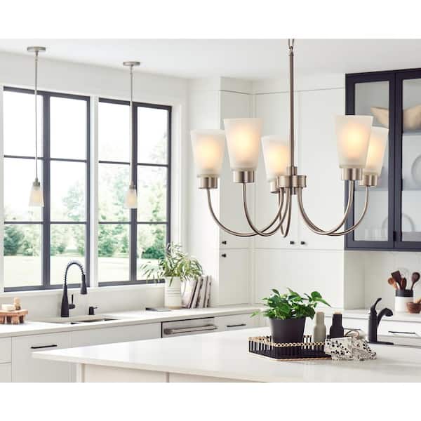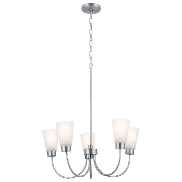 Erma 24 in. 5-Light Brushed Nickel Traditional Shaded Circle Dining Room Chandelier with Satin Etched Glass Shades