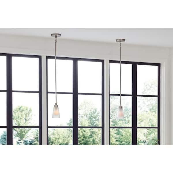 Erma 7.5 in. 1-Light Brushed Nickel Shaded Traditional Kitchen Mini Pendant Light with Satin Etched Glass