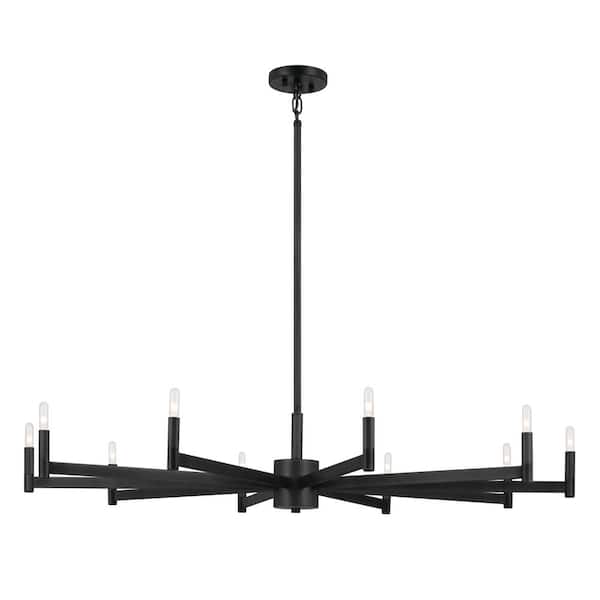 Erzo 48 in. 10-Light Black Mid-Century Modern Candle Circle Chandelier for Dining Room