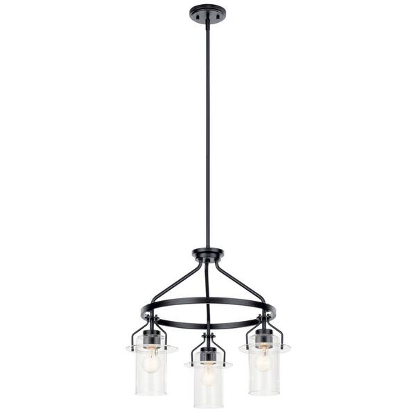 Everett 22.75 in. 3-Light Black Vintage Industrial Shaded Circle Chandelier for Dining Room