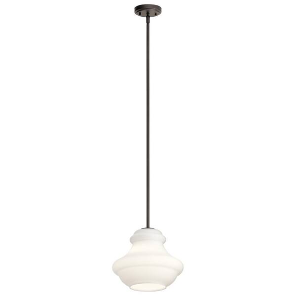 Everly 10.25 in. 1-Light Olde Bronze Transitional Shaded Kitchen Pendant Hanging Light with Satin Etched Opal Glass