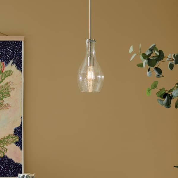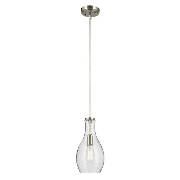 Everly 13.75 in. 1-Light Brushed Nickel Modern Shaded Bell Kitchen Hanging Pendant Light with Clear Seeded Glass
