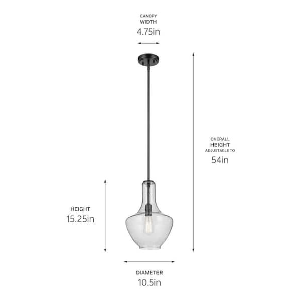 Everly 15.25 in. 1-Light Black Modern Shaded Bell Kitchen Hanging Pendant Light with Clear Seeded Glass