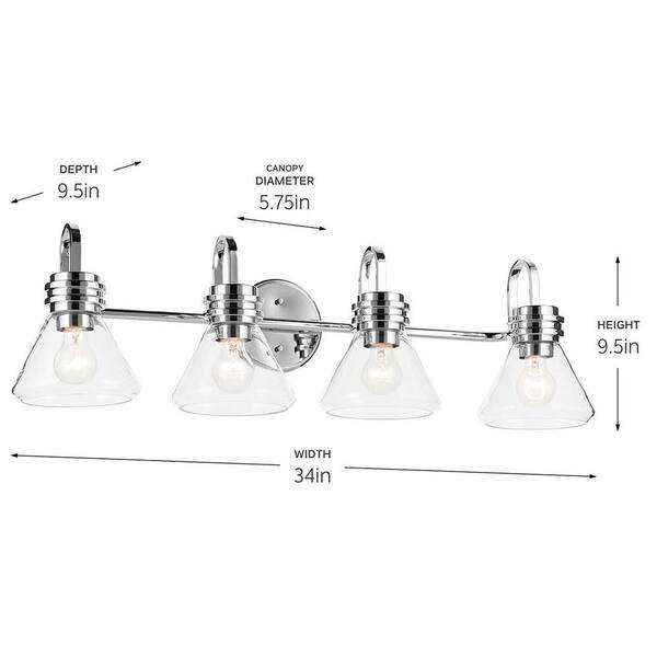 Farum 34 in. 4-Light Vanity Light with Clear Glass in Chrome