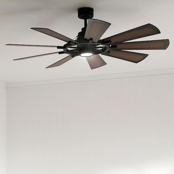 Gentry 60 in. Indoor Anvil Iron Downrod Mount Ceiling Fan with Integrated LED with Wall Control Included