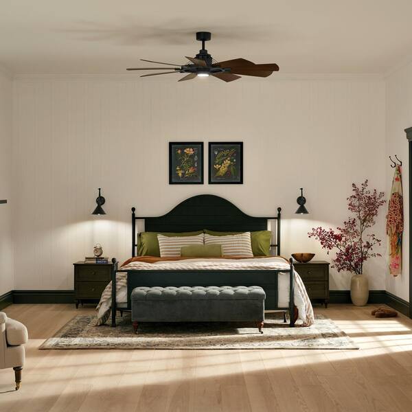 Gentry 60 in. Indoor Distressed Black Downrod Mount Ceiling Fan with Integrated LED with Wall Control Included